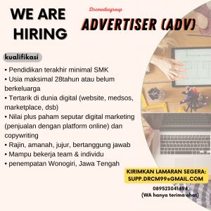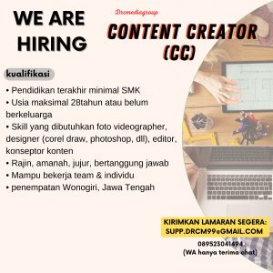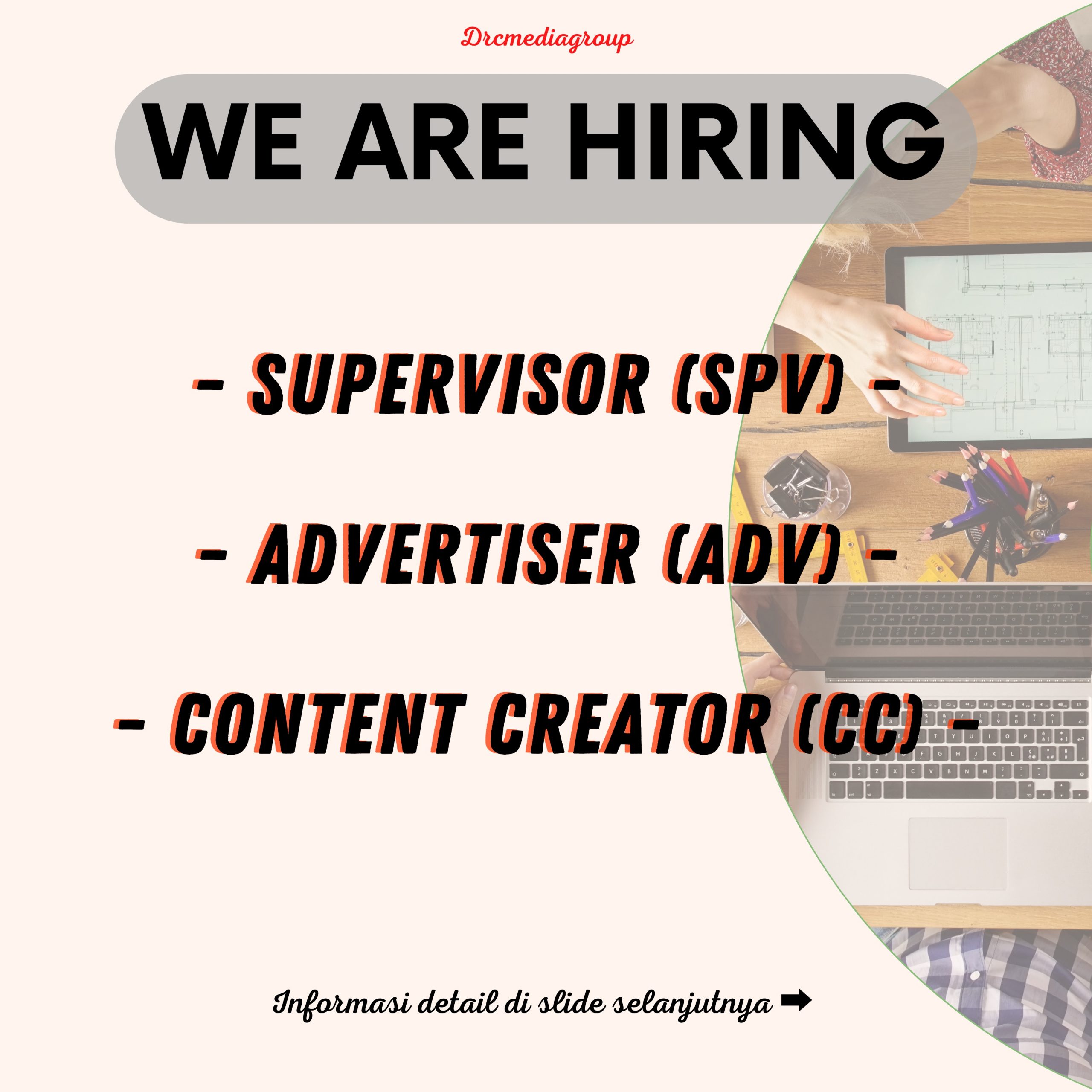 informasi detail di slide selanjutnya, bagi yang sesuai kualifikasi silahkan mengirim lamaran ke supp.drcm99@gmail.com