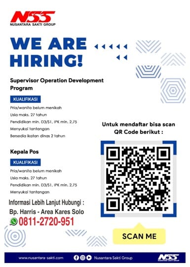 Nusantara Sakti Group (masih) membuka kesempatan untuk teman-teman yang sedang mencari pekerjaan untuk bergabung bersama kami untuk posisi : Supervisor Operation Development Program