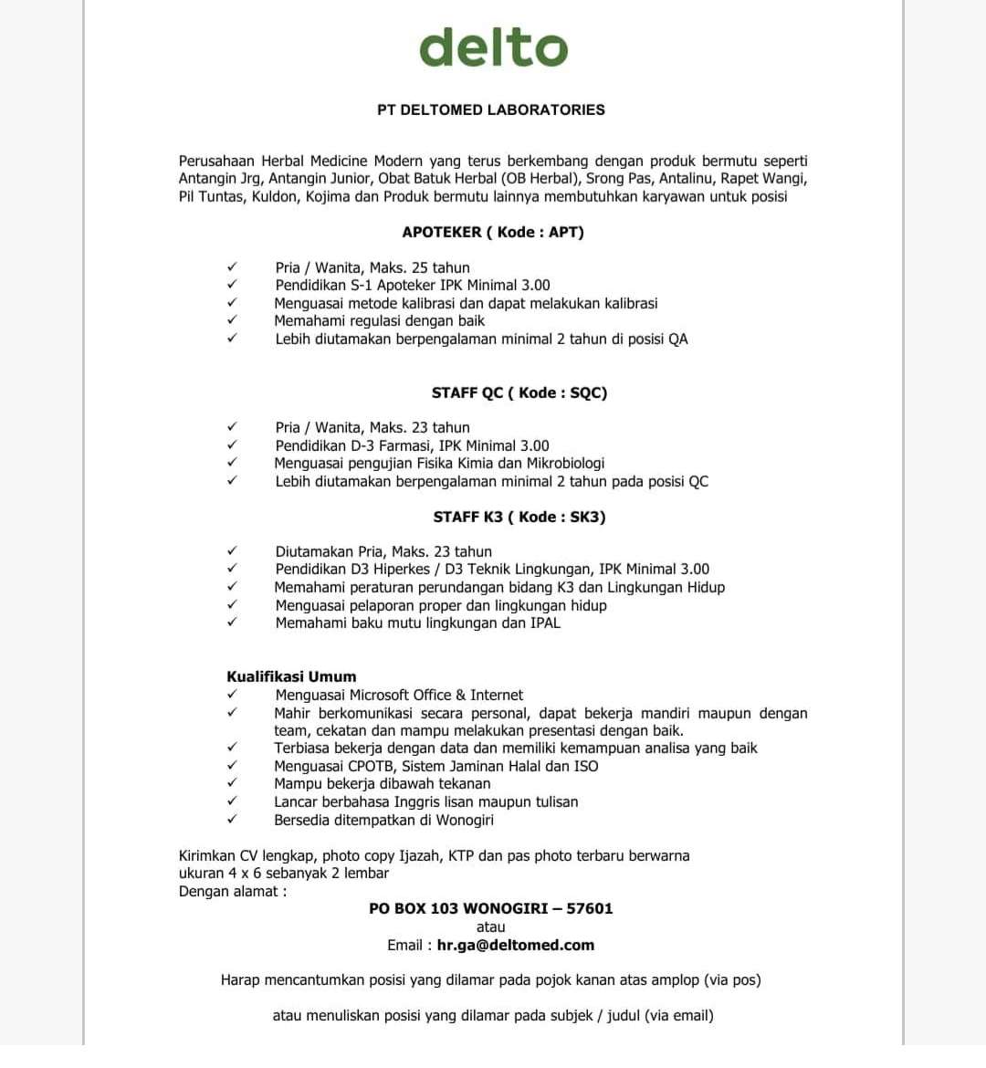Lowongan Kerja PT Delto Post navigation Loker Distributor dan Agen Kosmetik RSUD DR MOEWARDI Buka Lowongan Pegawai Non PNS Tidak Tetap Tahun 2023