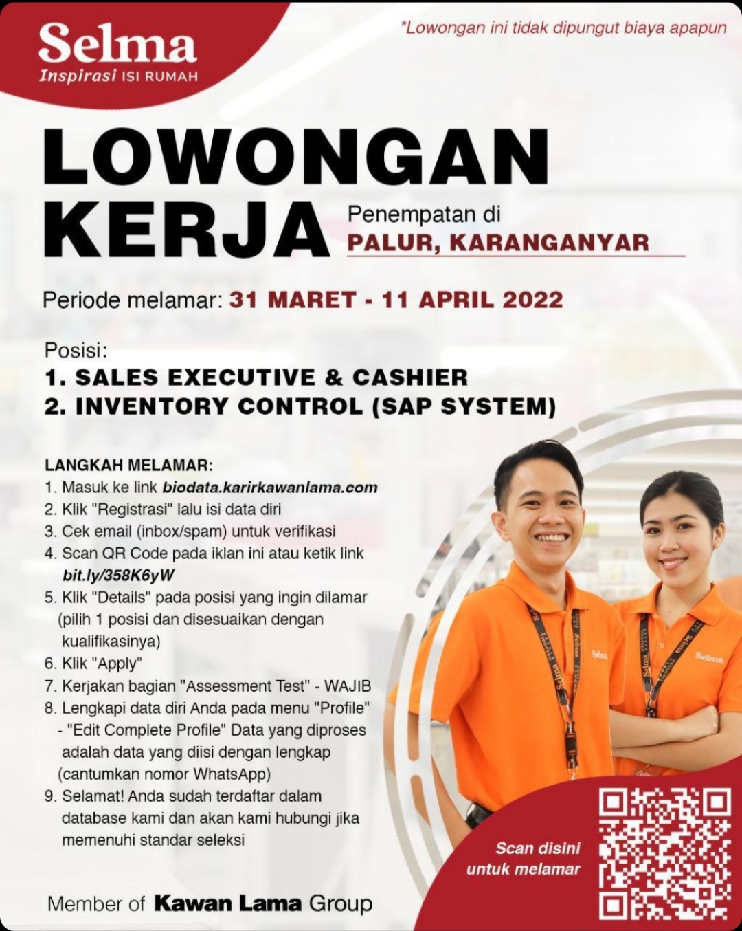 Periode melamar 31 maret – 11april 2022 Penempatan Palur Post navigation Loker Tridakara Loker Starsteak Karanganyar
