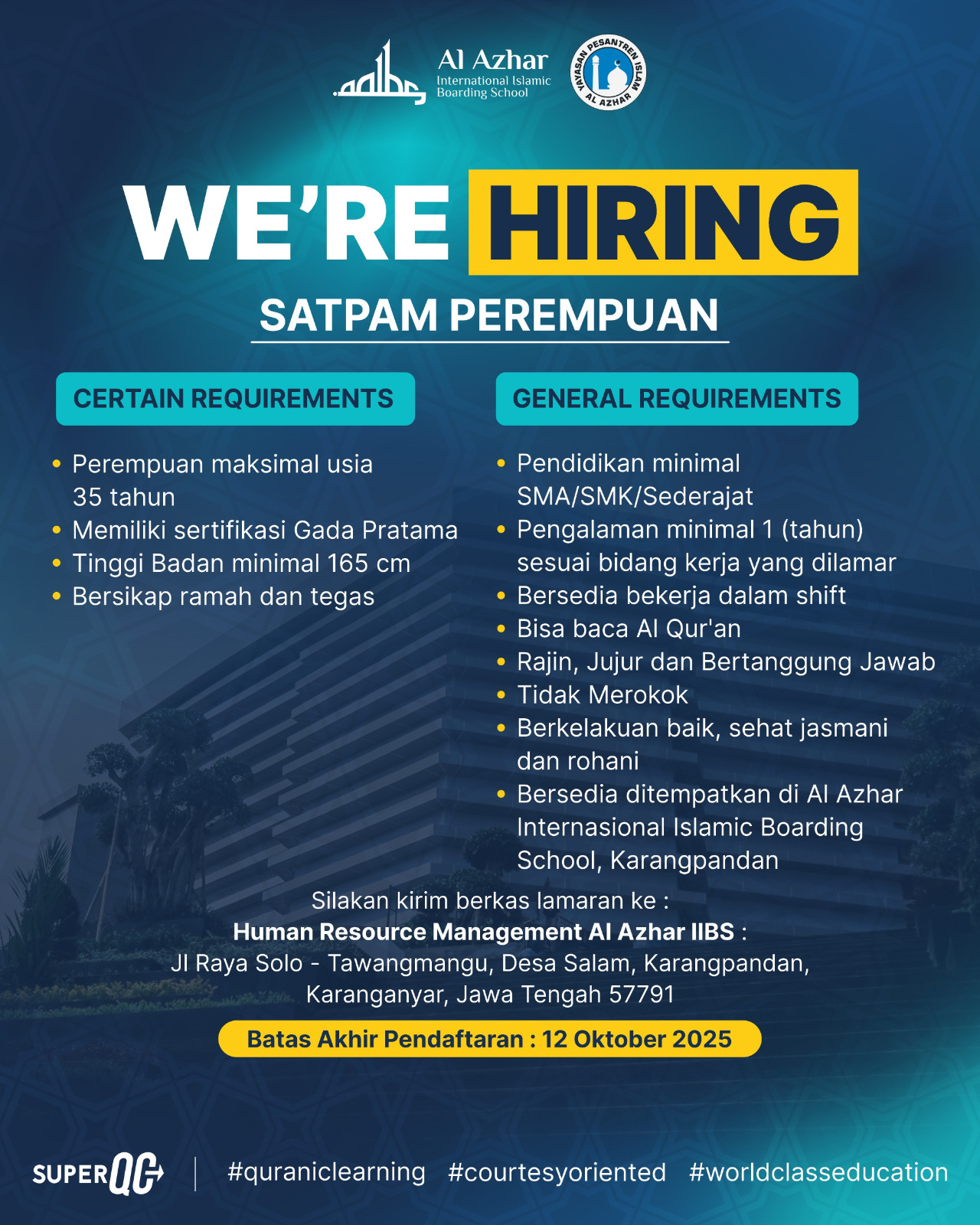 ✨ DIBUKA LOWONGAN PEGAWAI AL AZHAR INTERNATIONAL ISLAMIC BOARDING SCHOOL✨