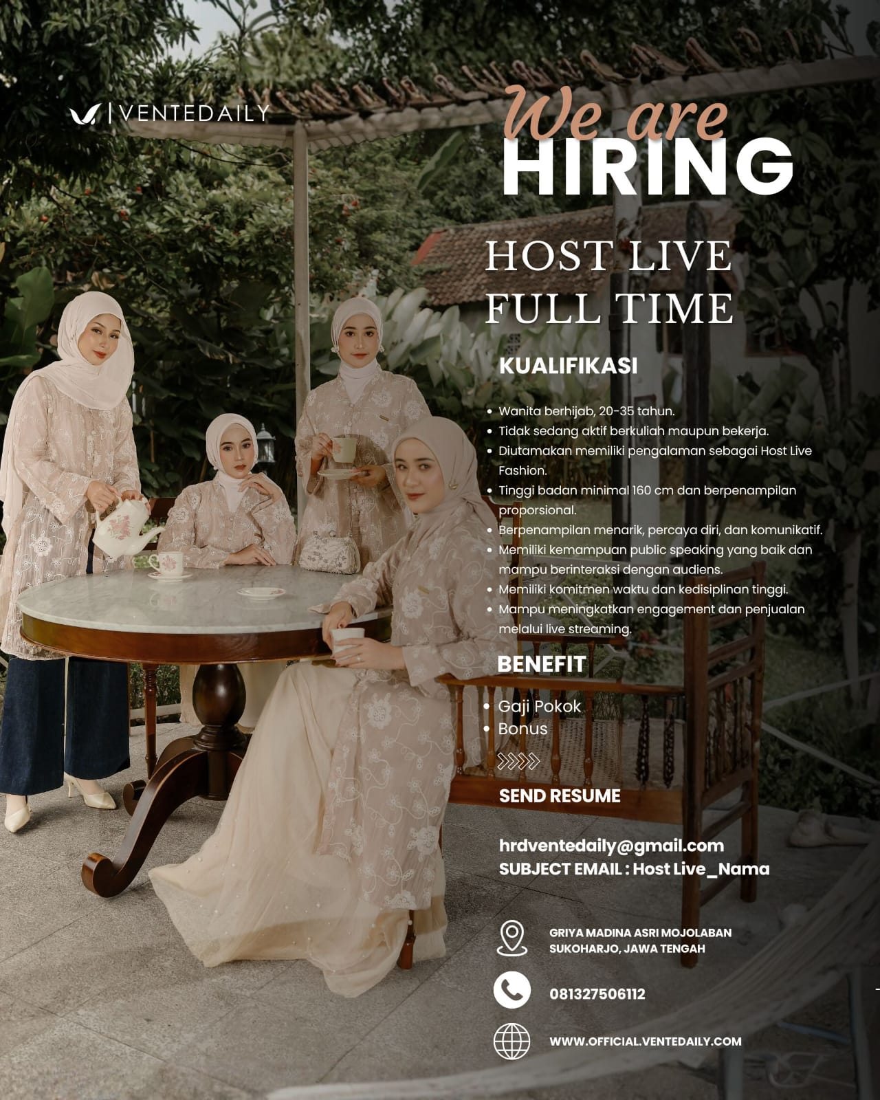 – diutamakan memiliki pengalaman sebagai host live fashion