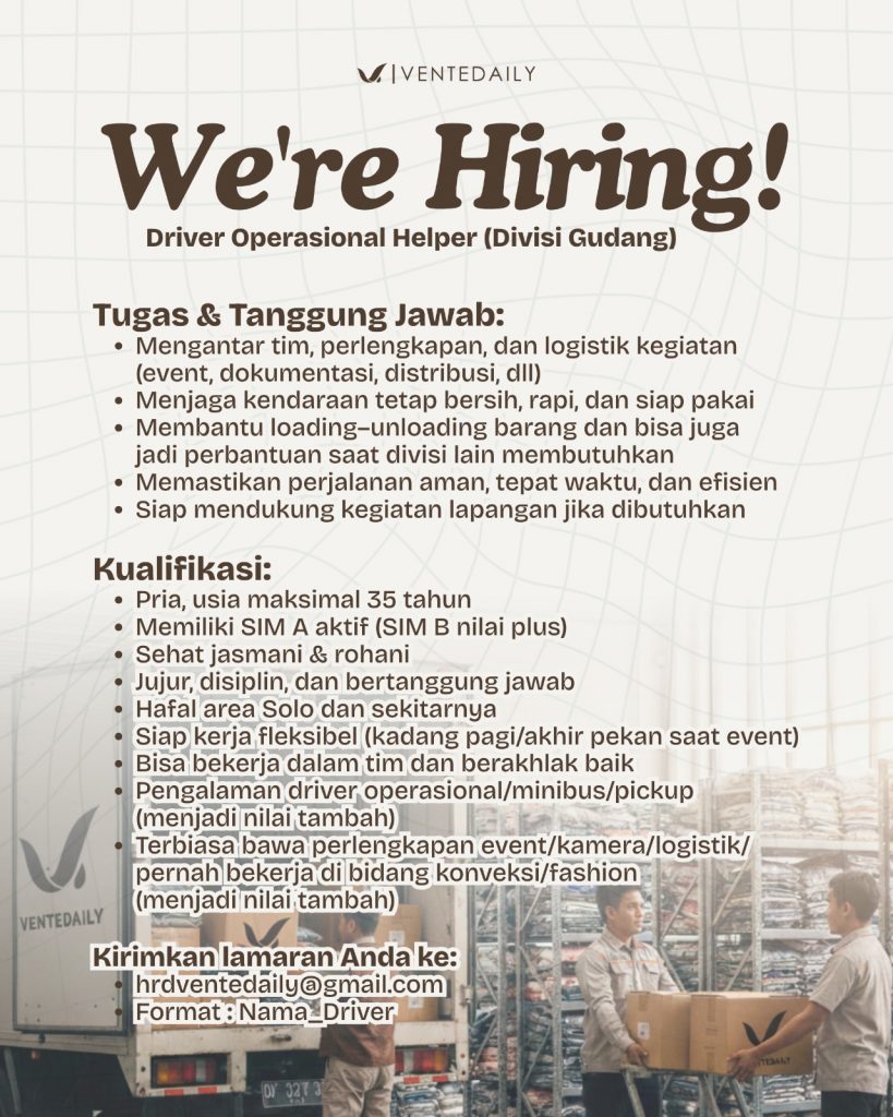 Kirim CV dan Lamaran ke email hrdventedaily@gmail.com