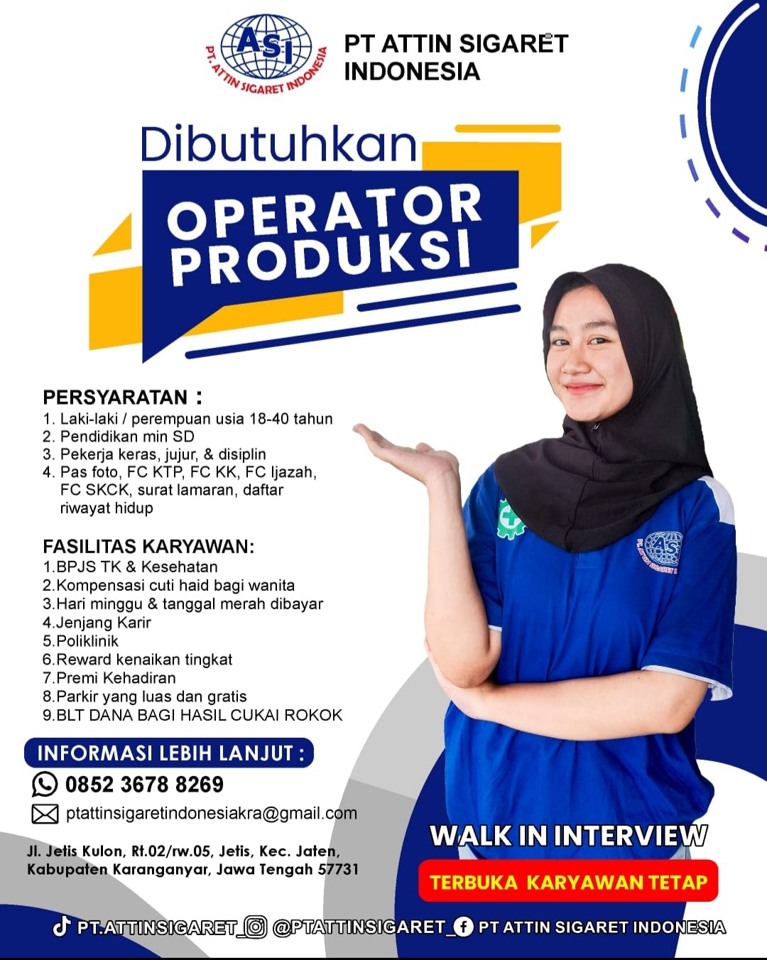 PT Attin Sigaret Indonesia lagi cari Operator Produksi yang tangguh, teliti, dan semangat tinggi! 💪