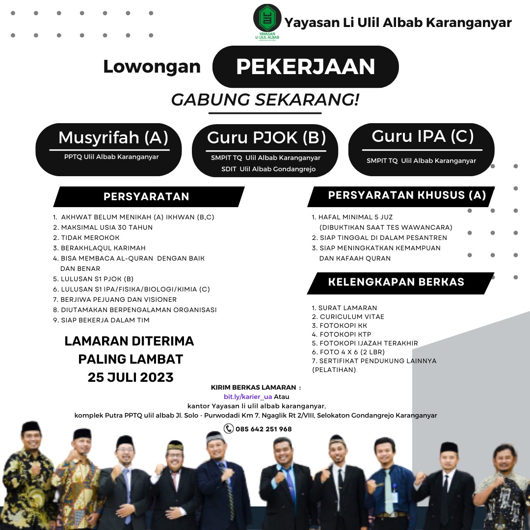 Lowongan Pekerjaan Yayasan Li Ulil Albab Karanganyar Juli 2023